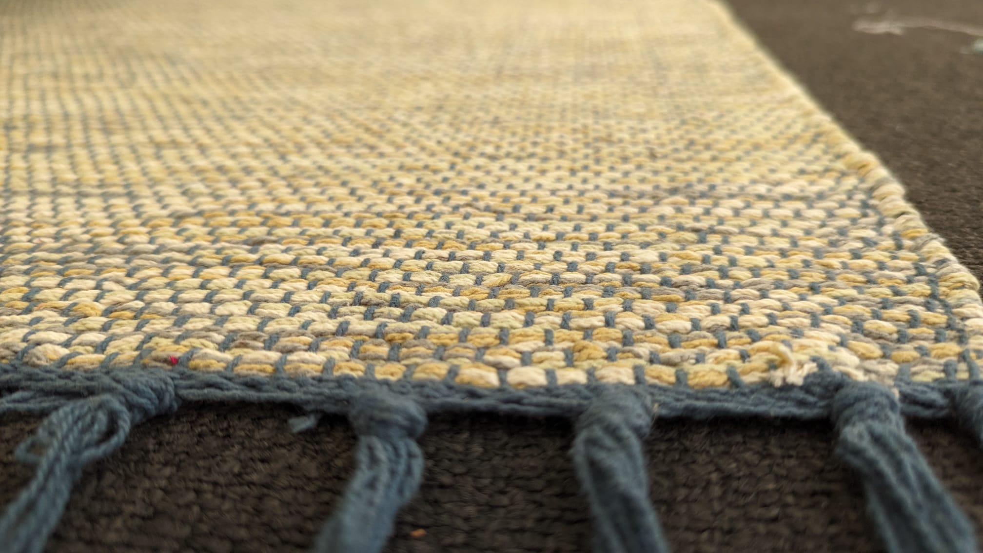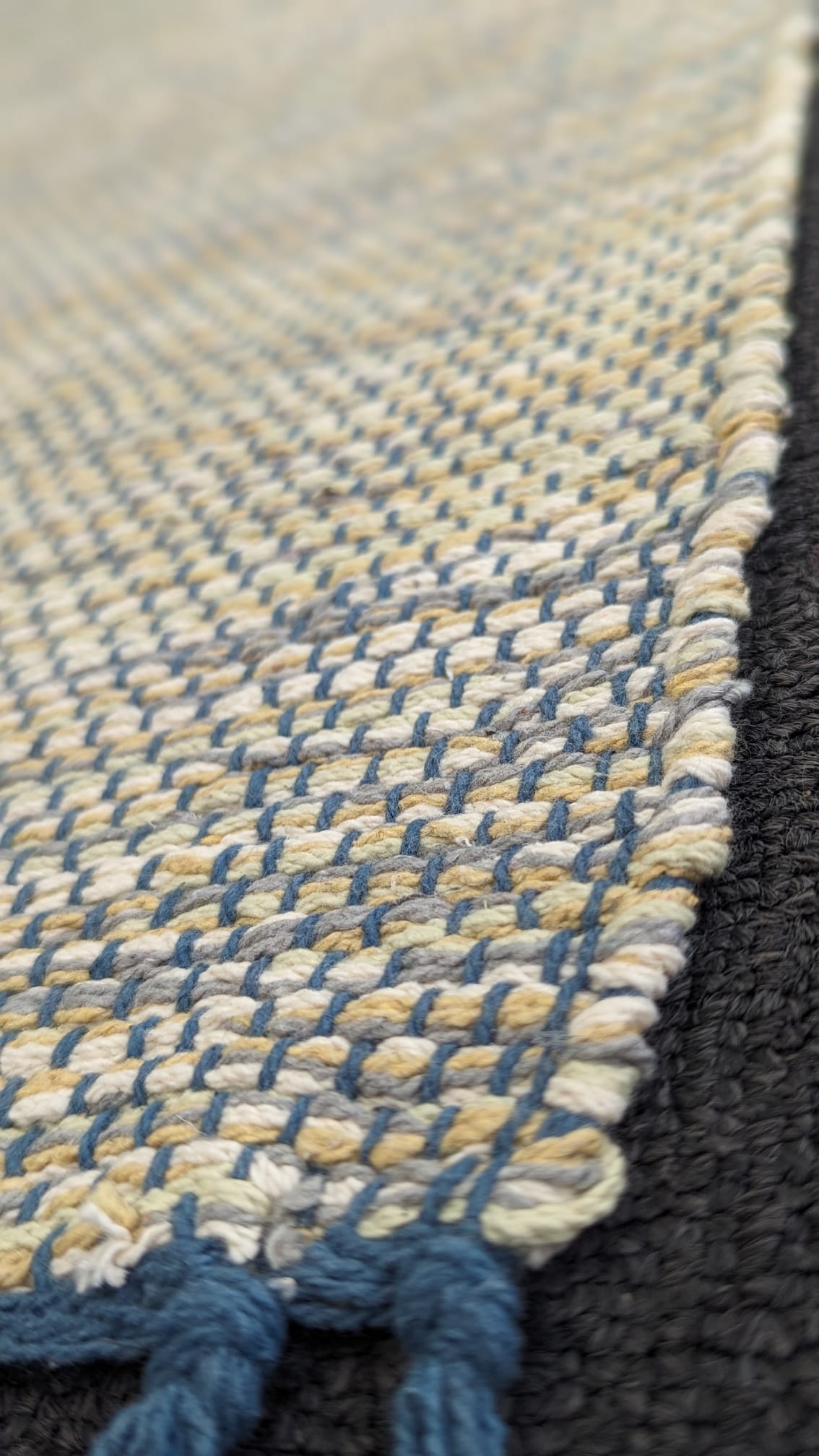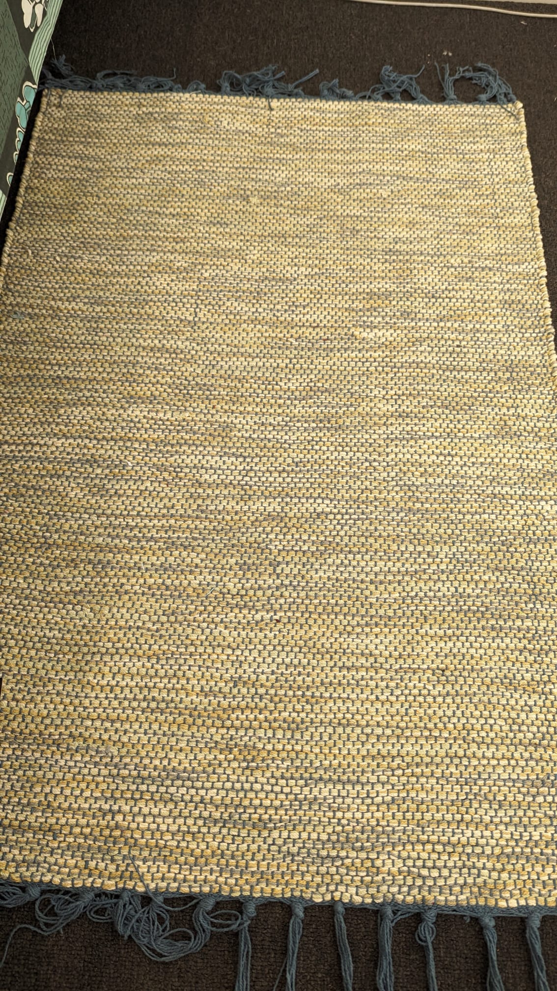 Beautifully hand woven door mat that can be used in kitchen, front door or anywhere in the house. Its cotton material makes it high absorbent of water