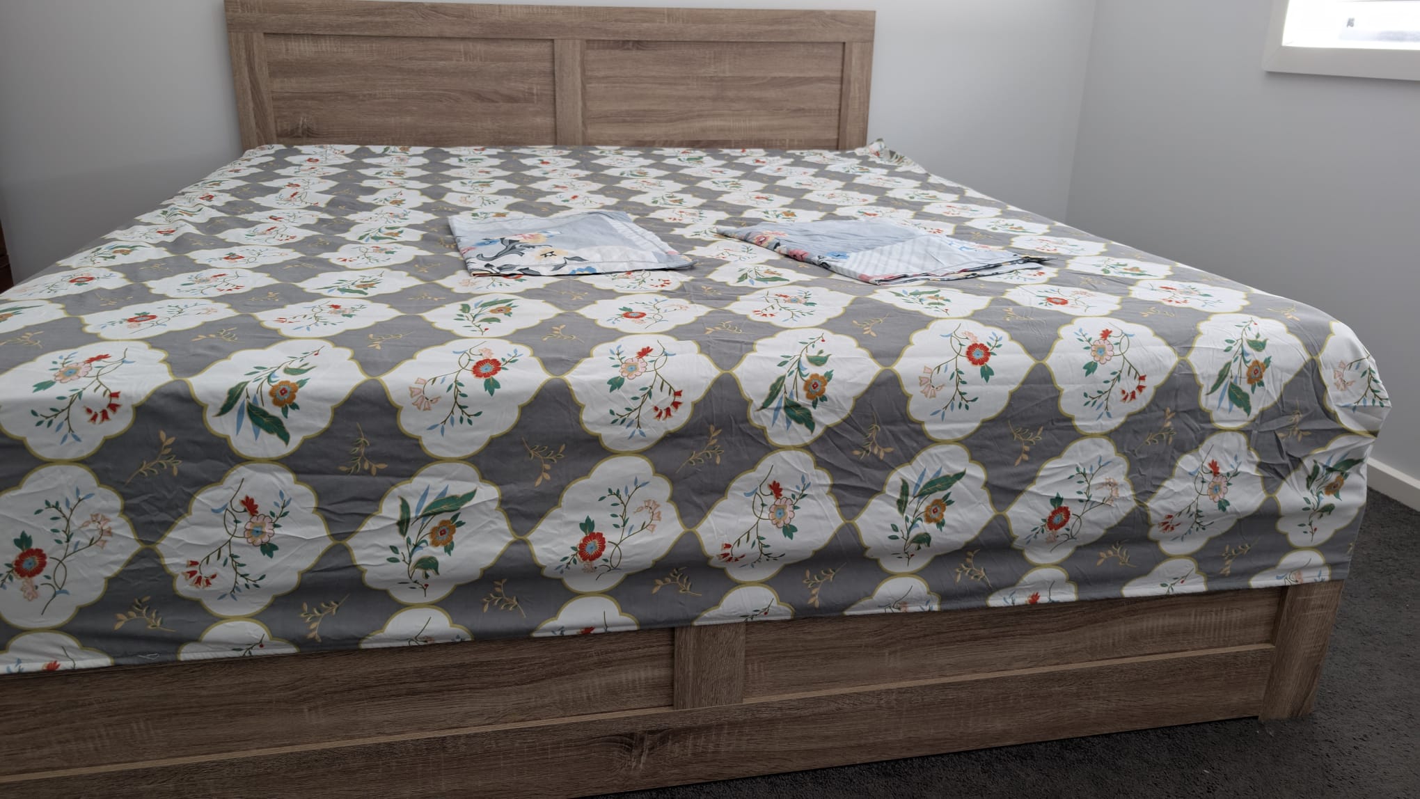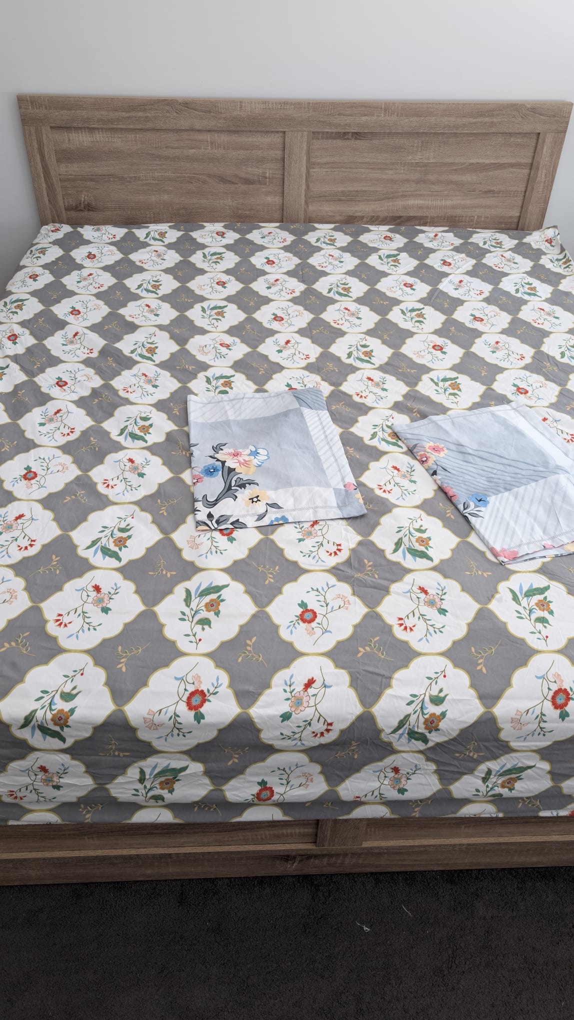 3 piece fitted king size bedsheet set including 1 fitted bedsheet + 2 pillow covers in beautiful floral design in beautiful blend of colors with contrast pillow covers.