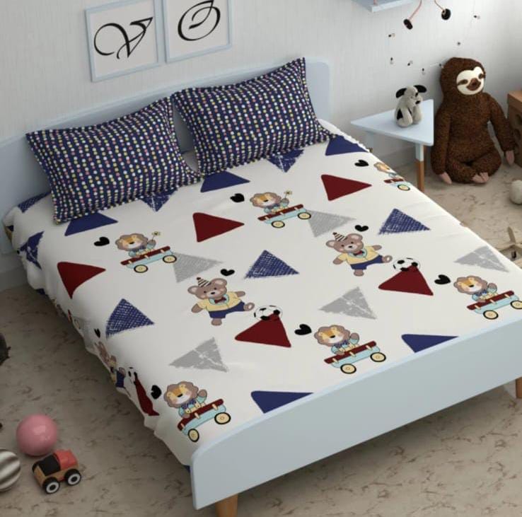3 piece cotton king fitted sheet set including 1 fitted sheet + 2 pillow covers with beautiful design on white base that suits the kids bedroom perfectly