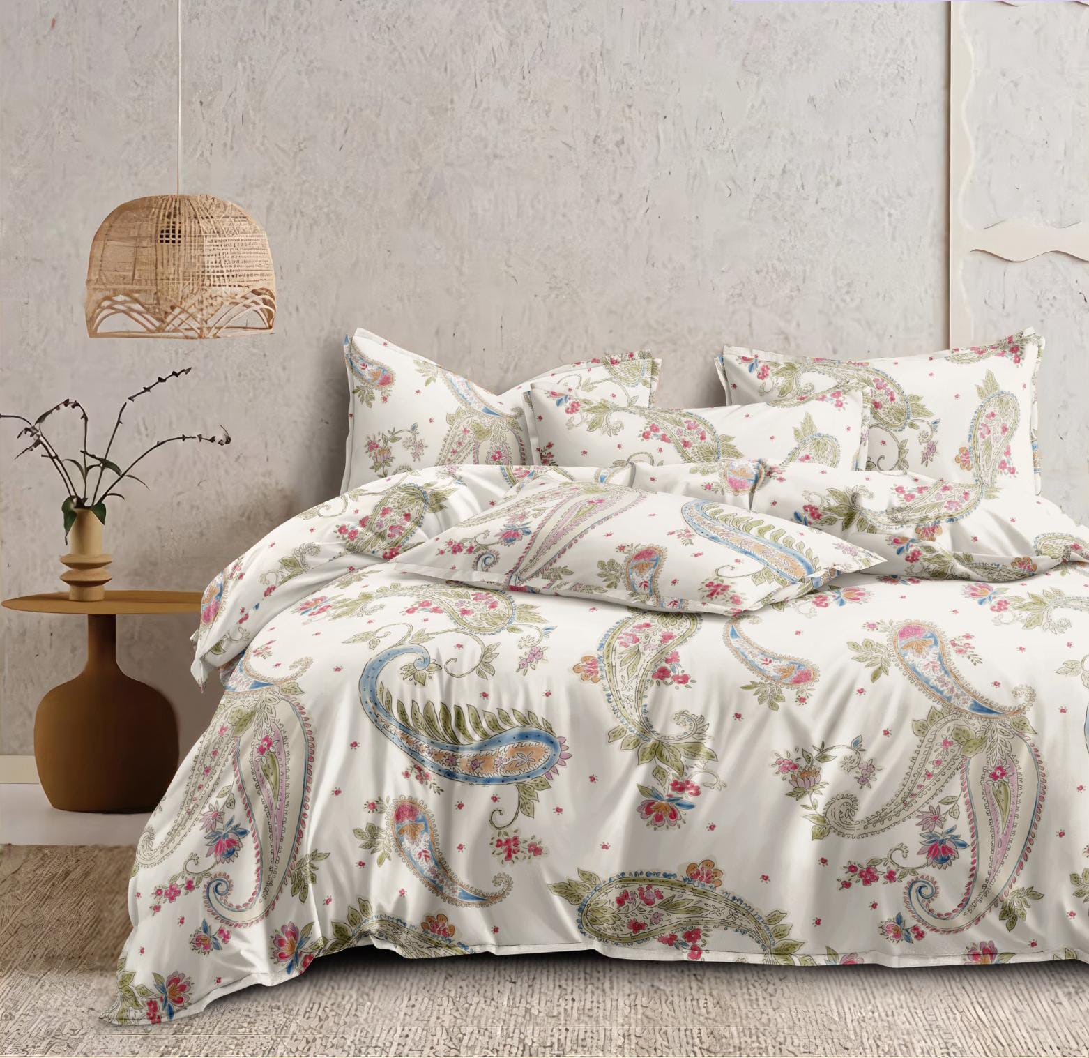 3 piece cotton king fitted sheet set including 1 fitted sheet + 2 pillow covers with very beautiful minimalist floral design with the blend of different shades of colors on off white base and beautiful floral print pillow covers